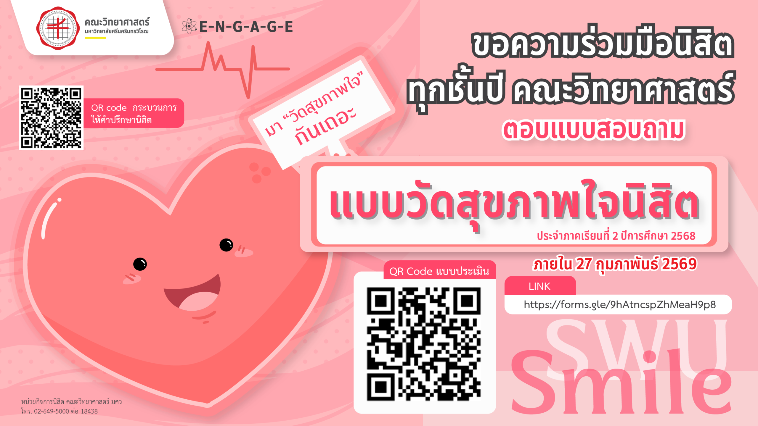 ขอความร่วมมือนิสิตทุกชั้นปี (ทุกระดับ ทุกหลักสูตร) คณะวิทยาศาสตร์ ทำแบบทดสอบ “แบบวัดสุขภาพใจนิสิต” ประจำภาคเรียนที่ 2 ปีการศึกษา 2568 Gallery ขอความร่วมมือนิสิตทุกชั้นปี (ทุกระดับ ทุกหลักสูตร) คณะวิทยาศาสตร์ ทำแบบทดสอบ “แบบวัดสุขภาพใจนิสิต” ประจำภาคเรียนที่ 2 ปีการศึกษา 2568 ทั่วไป, นิสิต ศิษย์เก่า นักเรียน, โครงการ ขอความร่วมมือนิสิตทุกชั้นปี (ทุกระดับ ทุกหลักสูตร) คณะวิทยาศาสตร์ ทำแบบทดสอบ “แบบวัดสุขภาพใจนิสิต” ประจำภาคเรียนที่ 2 ปีการศึกษา 2568montawan2026-02-10T15:19:14+07:00กุมภาพันธ์ 10, 2026|Categories: ทั่วไป, นิสิต ศิษย์เก่า นักเรียน, โครงการ|Tags: 2569, บัณฑิต, ป.ตรี|