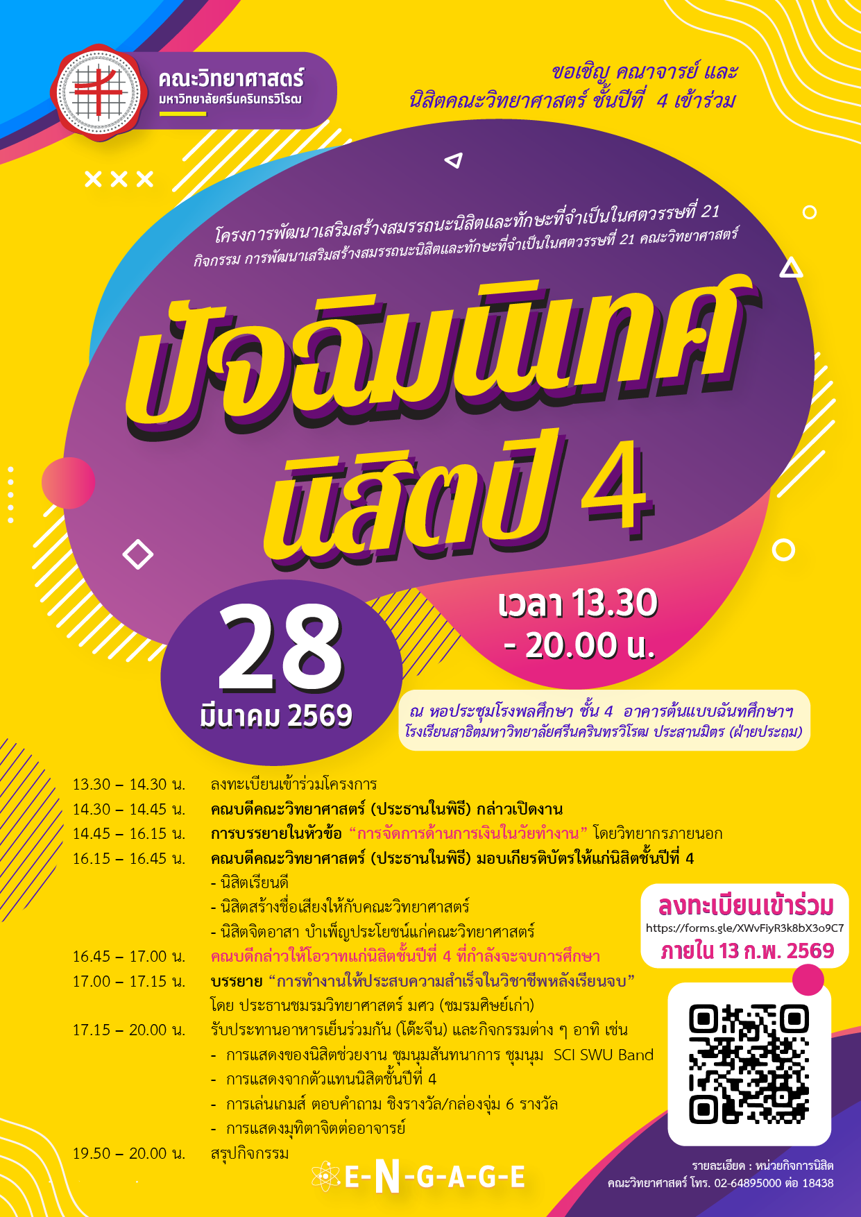 📣 ปัจฉิมนิเทศนิสิตปี 4 ภายใต้ Theme 👉✨ “The Characters of Our Last Chapter : ตัวละครในบทสุดท้ายของเรา” Gallery 📣 ปัจฉิมนิเทศนิสิตปี 4 ภายใต้ Theme 👉✨ “The Characters of Our Last Chapter : ตัวละครในบทสุดท้ายของเรา” ทั่วไป, นิสิต ศิษย์เก่า นักเรียน, โครงการ 📣 ปัจฉิมนิเทศนิสิตปี 4 ภายใต้ Theme 👉✨ “The Characters of Our Last Chapter : ตัวละครในบทสุดท้ายของเรา”montawan2026-02-10T08:08:03+07:00กุมภาพันธ์ 10, 2026|Categories: ทั่วไป, นิสิต ศิษย์เก่า นักเรียน, โครงการ|Tags: 2569, ป.ตรี|