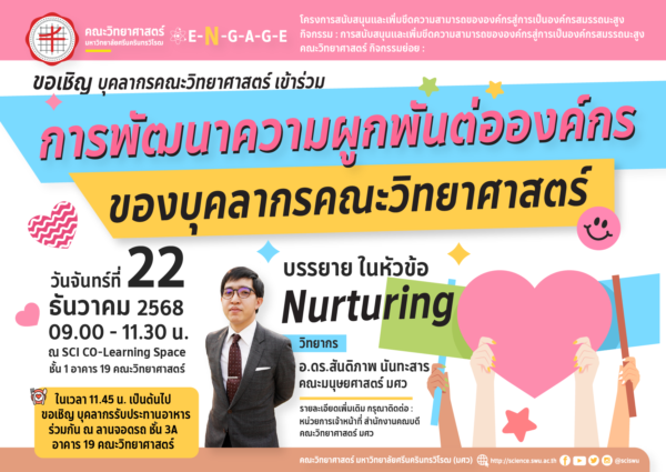 āđāļāļ§āļąāļāļāļąāļāļāļĢāđāļāļĩāđ 22 āļāļąāļāļ§āļēāļāļĄ 2568 â° āđāļ§āļĨāļē 09.00 – 11.30 āļ. āļ āļŦāđāļāļ SCI Co-Learning Space āļāļąāđāļ 1 āļāļēāļāļēāļĢ 19 āļāļāļ°āļ§āļīāļāļĒāļēāļĻāļēāļŠāļāļĢāđ ð āđāļāļĒāđāļāđāļĢāļąāļāđāļāļĩāļĒāļĢāļāļīāļāļēāļ āļāļēāļāļēāļĢāļĒāđ āļāļĢ.āļŠāļąāļāļāļīāļ āļēāļ āļāļąāļāļāļ°āļŠāļēāļĢ āļāļēāļāļāļāļ°āļĄāļāļļāļĐāļĒāļĻāļēāļŠāļāļĢāđ āļĄāļĻāļ§ āđāļŦāđāđāļāļĩāļĒāļĢāļāļīāļāļĢāļĢāļĒāļēāļĒāđāļāļŦāļąāļ§āļāđāļ âNurturingâ