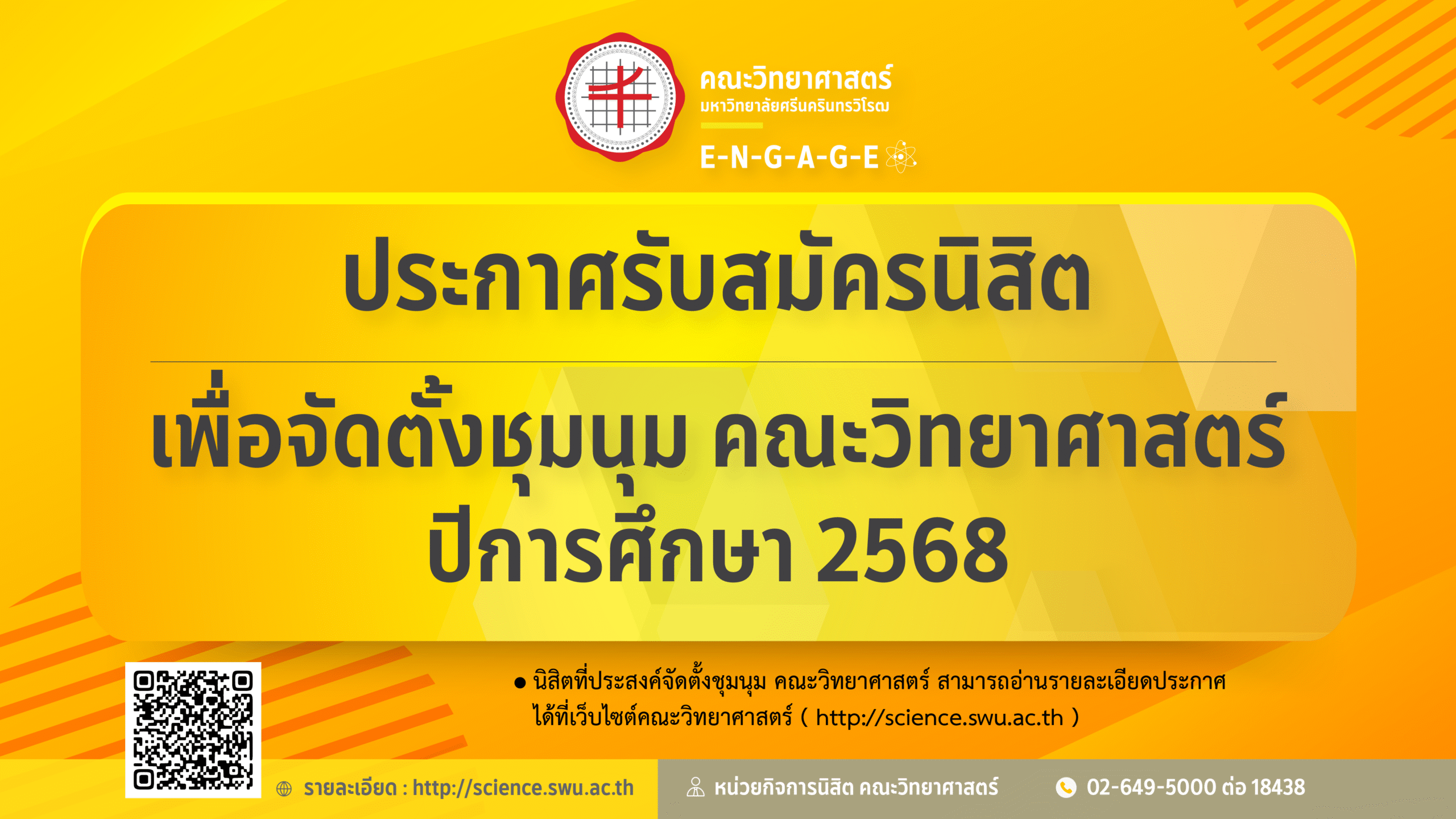 ประกาศรับสมัครนิสิตระดับปริญญาตรี คณะวิทยาศาสตร์ “เพื่อจัดตั้งชุมนุม คณะวิทยาศาสตร์ ปีการศึกษา 2568”