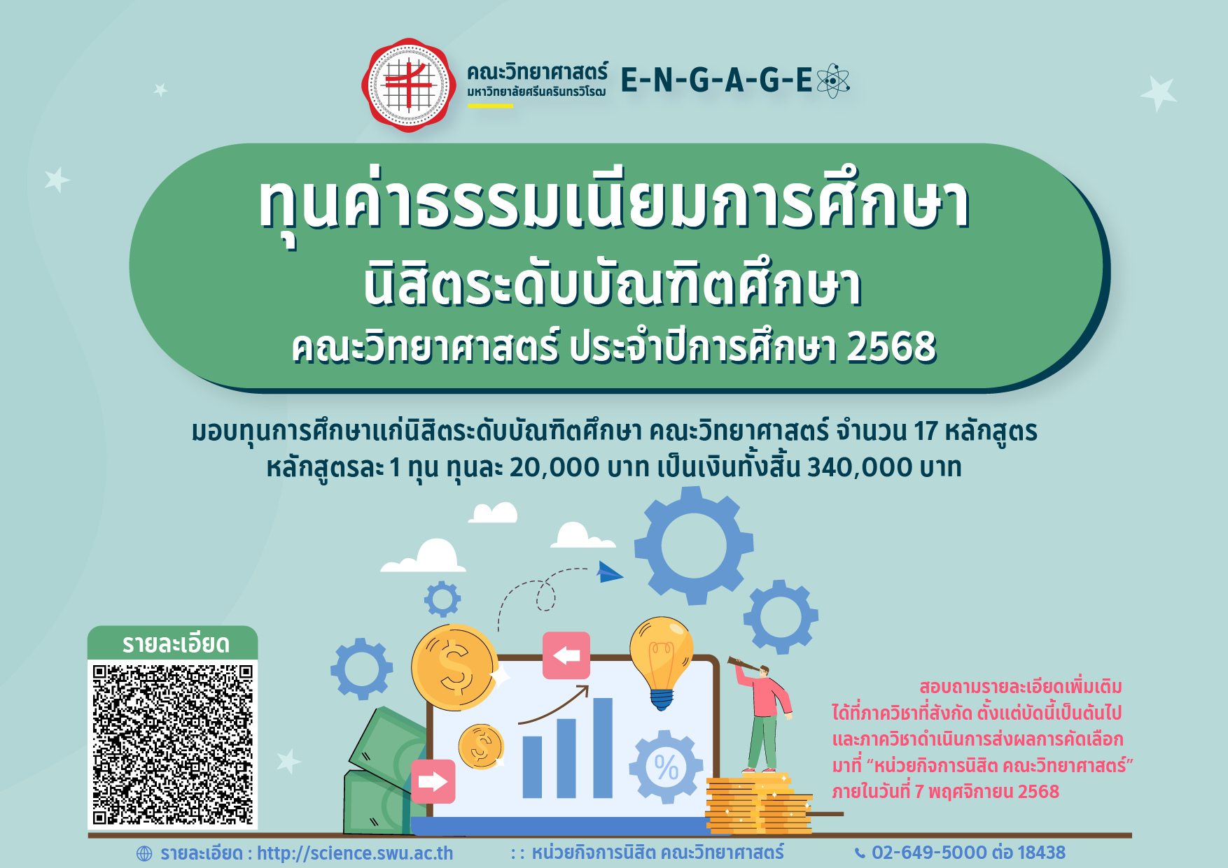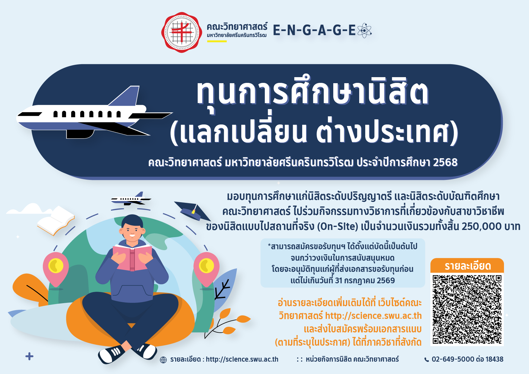 ทุนการศึกษานิสิต (แลกเปลี่ยน ต่างประเทศ) คณะวิทยาศาสตร์ มหาวิทยาลัยศรีนครินทรวิโรฒ ประจำปีการศึกษา 2568