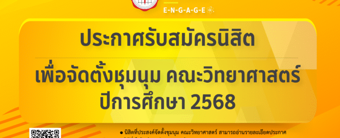 ประกาศรับสมัครนิสิตระดับปริญญาตรี คณะวิทยาศาสตร์ “เพื่อจัดตั้งชุมนุม คณะวิทยาศาสตร์ ปีการศึกษา 2568”